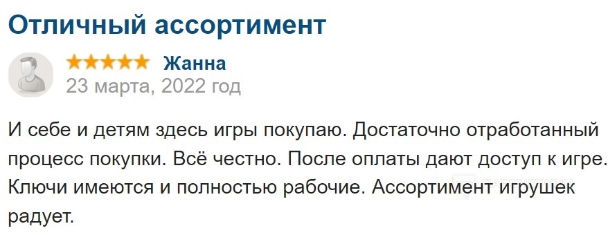 Другой автор подчеркивает удобство и честность работы сервиса. Отлаженный процесс покупки завершается быстрым предоставлением рабочих ключей. Такой подход вызывает доверие у пользователей. Упоминание регулярных покупок и разнообразия ассортимента также свидетельствует о том, что