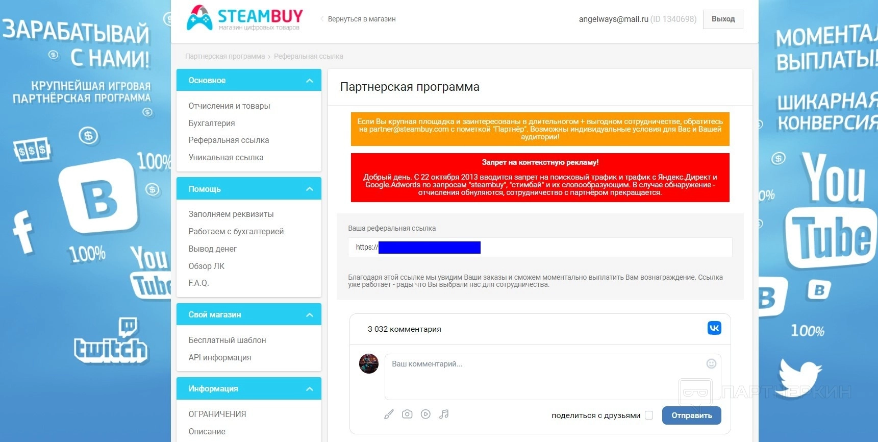 Таким образом, отсутствие личного кабинета на STEAMBUY является частью упрощенного подхода сервиса. Прямые покупки через email обеспечивают удобство для большинства пользователей. В свою очередь участники партнерской программы могут воспользоваться функционалом для работы с клиентами.