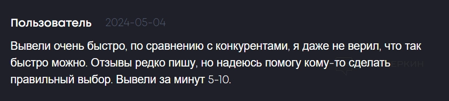Пользователи высоко оценивают работу сервиса — об этом свидетельствуют около 2 000 положительных отзывов на Bestchange. Клиентам нравится быстрый вывод. Один из участников вывел средства в течение 5-10 минут.