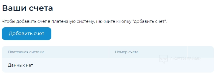 Ваши счета . Пользователь может добавить свои реквизиты. Для этого необходимо выбрать платежную систему и ввести номер счета.