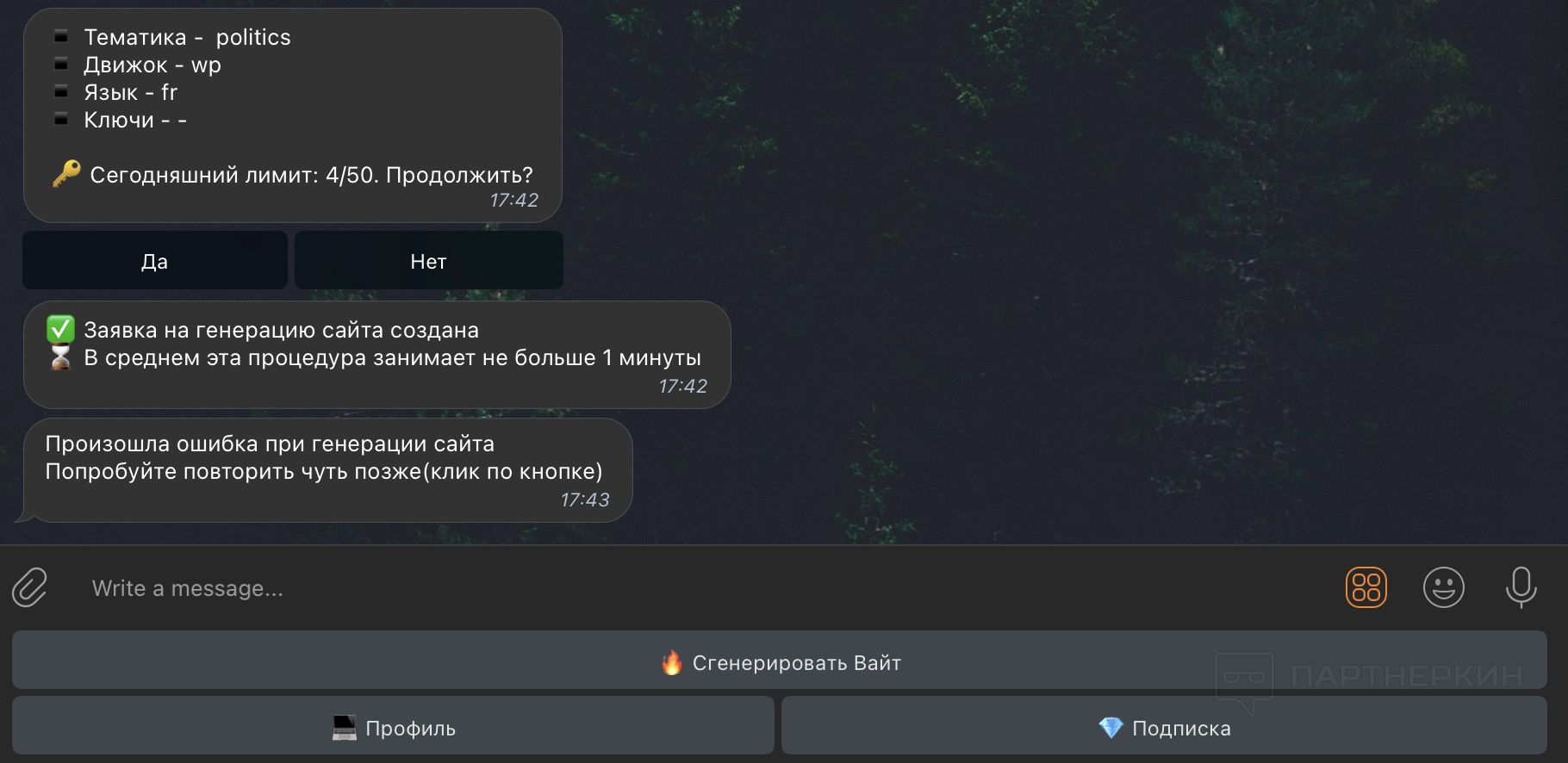 Бот генерирует вайты по нужной тематике и на нужном языке менее чем за минуту. При этом локализован не только текст, но и картинки, вставленные на страницу.