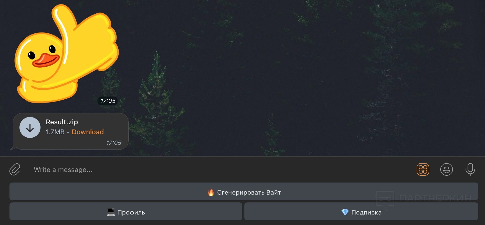 Покажем примеры получившихся лендингов по всем доступным в боте тематикам: