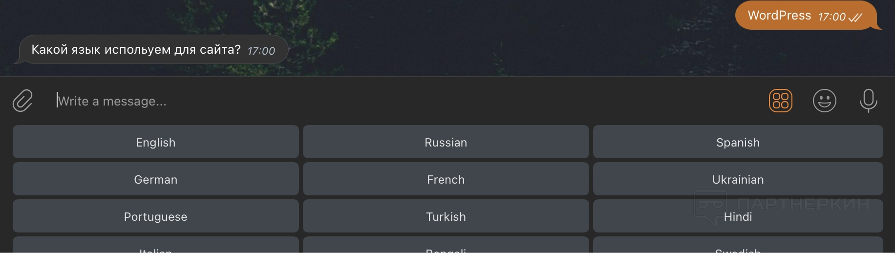 Следующий шаг — выбор языка для вайта. Всего доступно 17 вариантов: