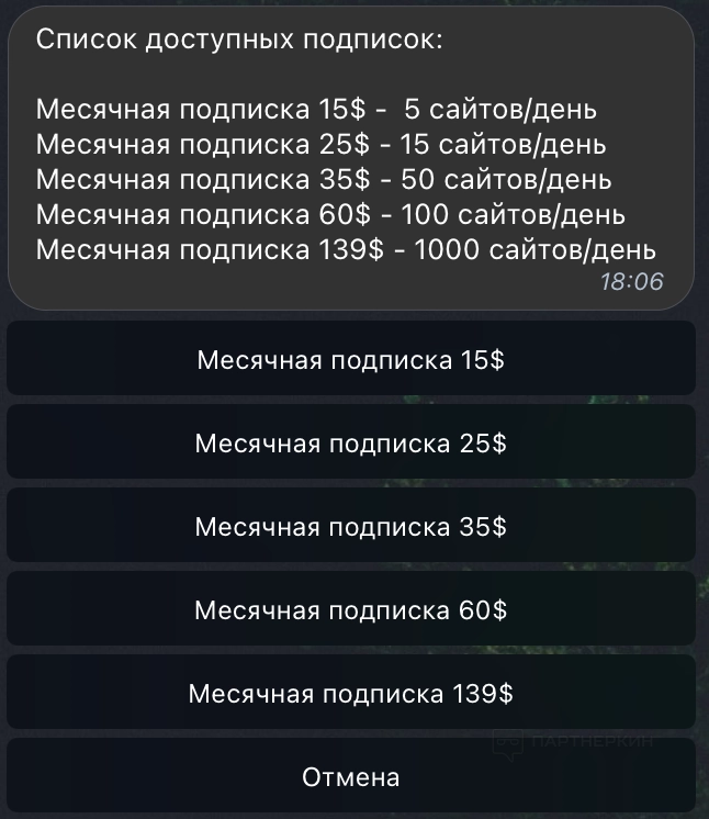 На среднем тарифе можно получить за $35 по 50 вайтов каждый день. Это 1 500 лендов в месяц по 2 цента за штуку. Тарифы крайне выгодные, вайты качественные, а ботом удобно пользоваться.