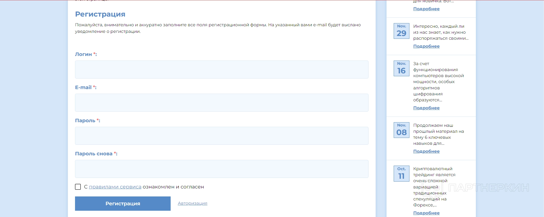 Новости. В этом разделе пользователи могут узнать о последних новостях и обновлениях платформы, а также о важных событиях в мире криптовалют.
