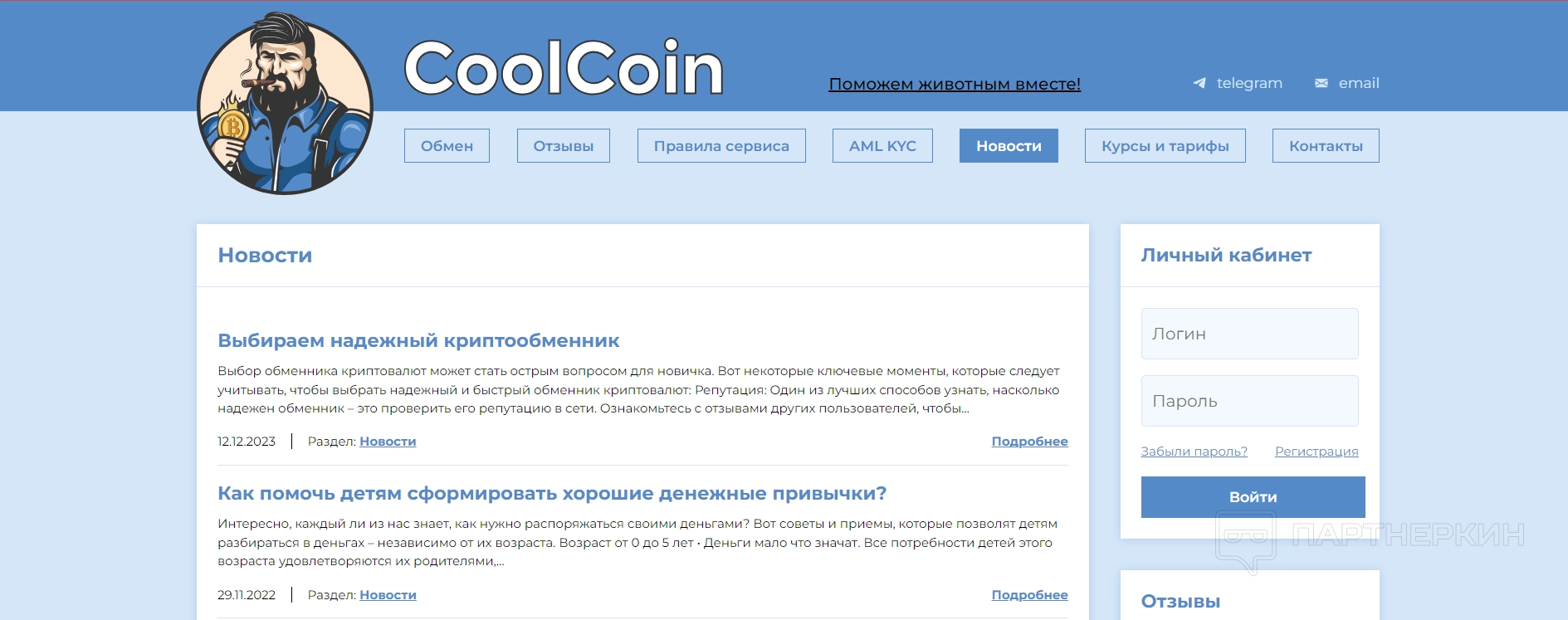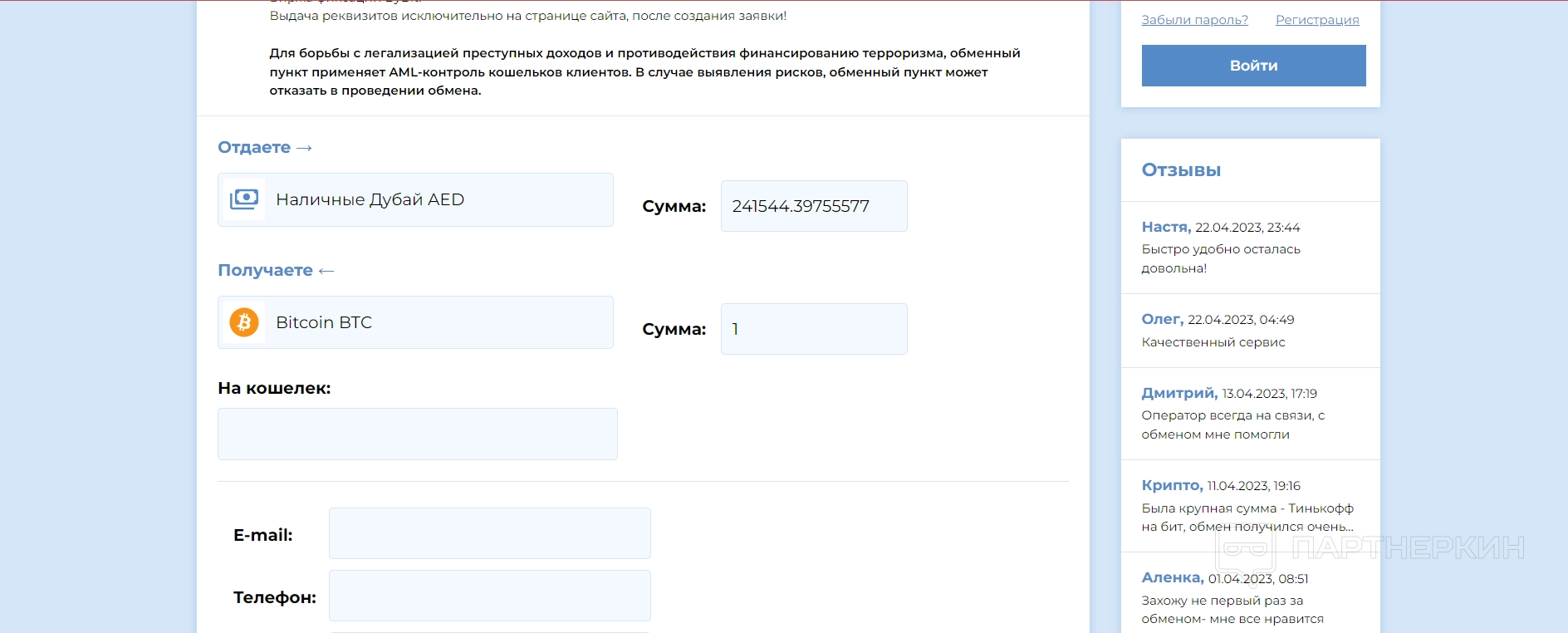 Отзывы. Здесь пользователи могут оставлять свои отзывы о работе обменника, что помогает другим пользователям принять более информированное решение.