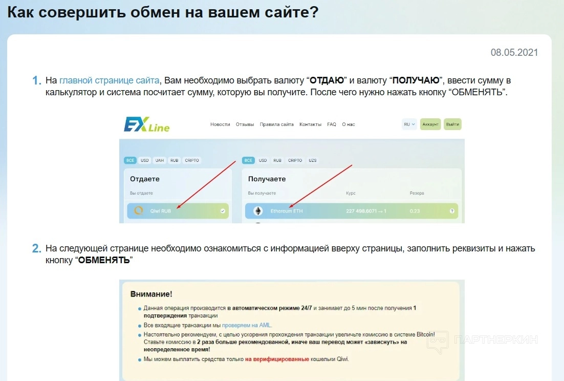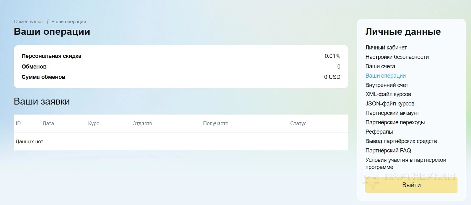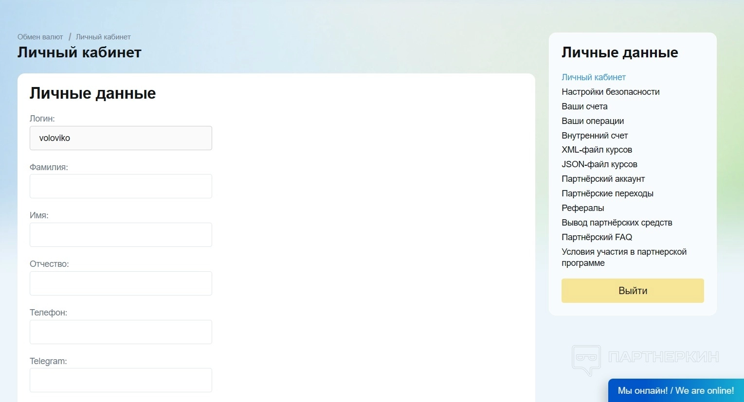 Доступ к партнерской программе пользователь обменника получает после регистрации. Он может приводить рефералов и получать партнерские отчисления с их обменов денег.