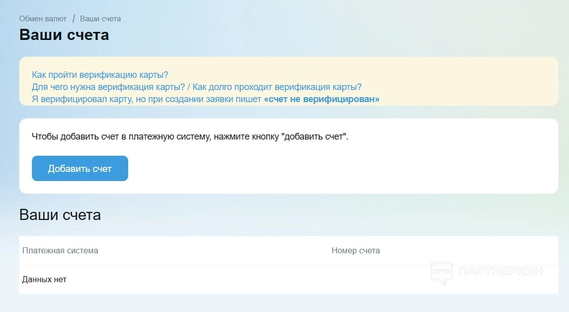 Сервис требует верификацию карты для подтверждения, что пользователь действительно обладает пластиковой картой и осуществляет обмен.