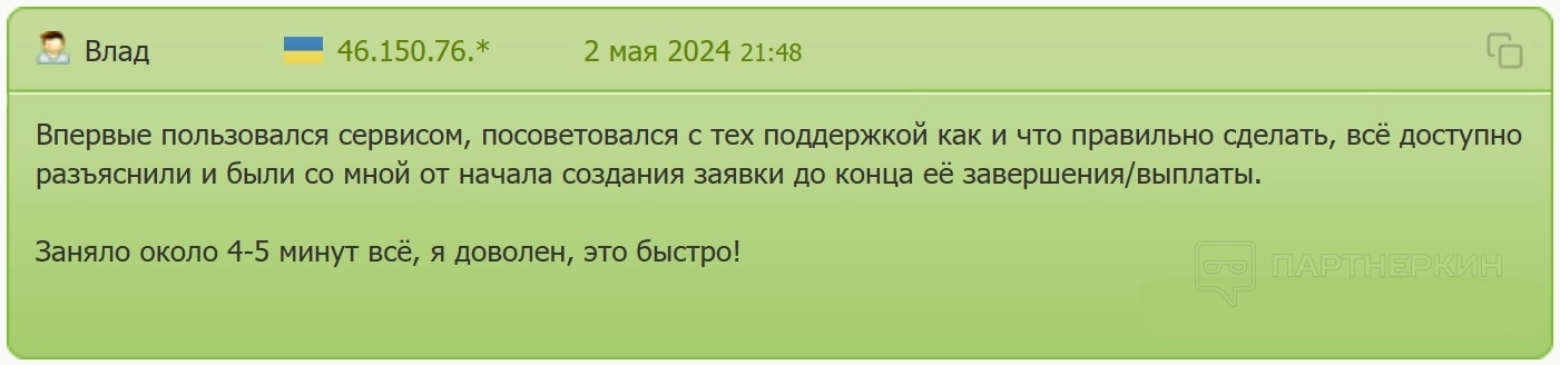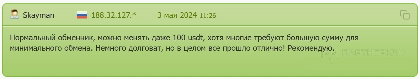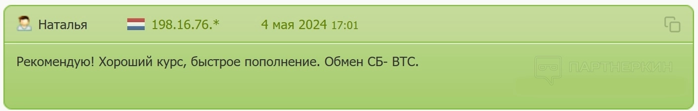 В превалирующем большинстве пользователи подчеркивают высокую скорость обмена. Некоторые отзывы говорят, что хотелось бы быстрее, однако относятся с пониманием к временным сбоям и в целом остаются лояльны обменнику.