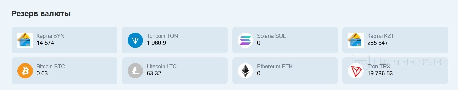 К каждой продаваемой цифровой и фиатной валюте указан имеющийся резерв. Если не хватает резервных средств, можно обратиться в службу поддержки, и запрос будет рассмотрен.