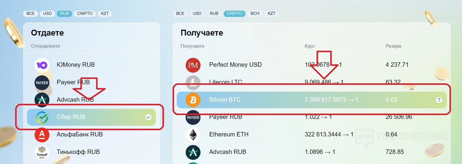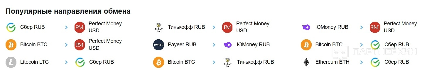 Среди поддерживаемых криптовалют, которые можно приобрести в обменнике:
