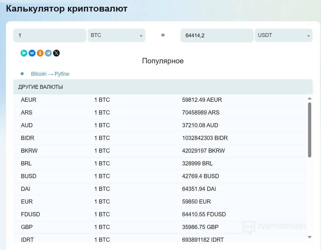 Используя калькулятор сервиса, можно определить текущую стоимость Bitcoin, Litecoin и Ethereum. Пользователь сможет узнать, сколько Satoshi или Bitcoin стоят в различных валютах, сколько сатоши можно купить за одну фиатную единицу, а также сколько гривен нужно, чтобы приобрести один Bitcoin. Конвертер поддерживает как прямое, так и обратное направление обмена – можно узнать, сколько фиатной валюты необходимо для покупки одной единицы криптовалюты. Для этого просто понадобится выбрать нужную валюту в одной из колонок.