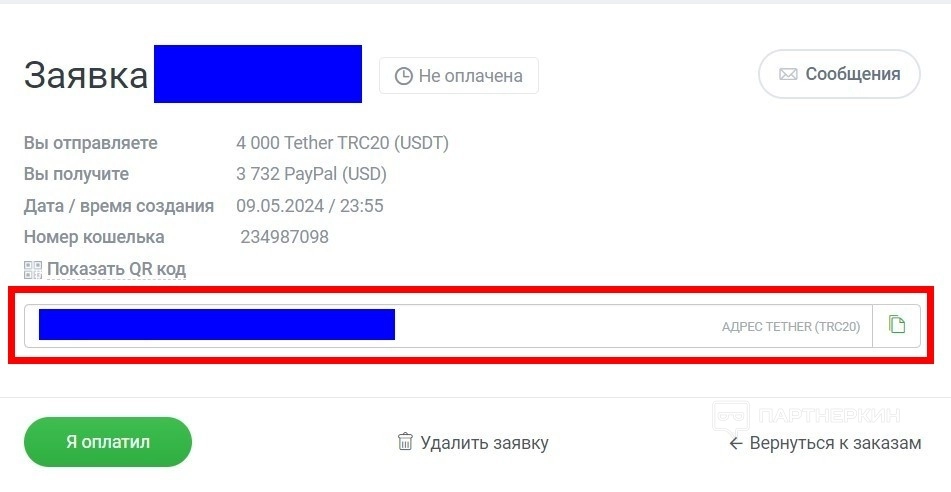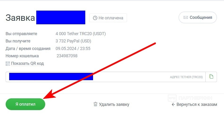Обработка заявки занимает от 5 до 20 минут после перевода средств на счет. После подтверждения транзакции (35 подтверждений), средства автоматически зачисляются на счет