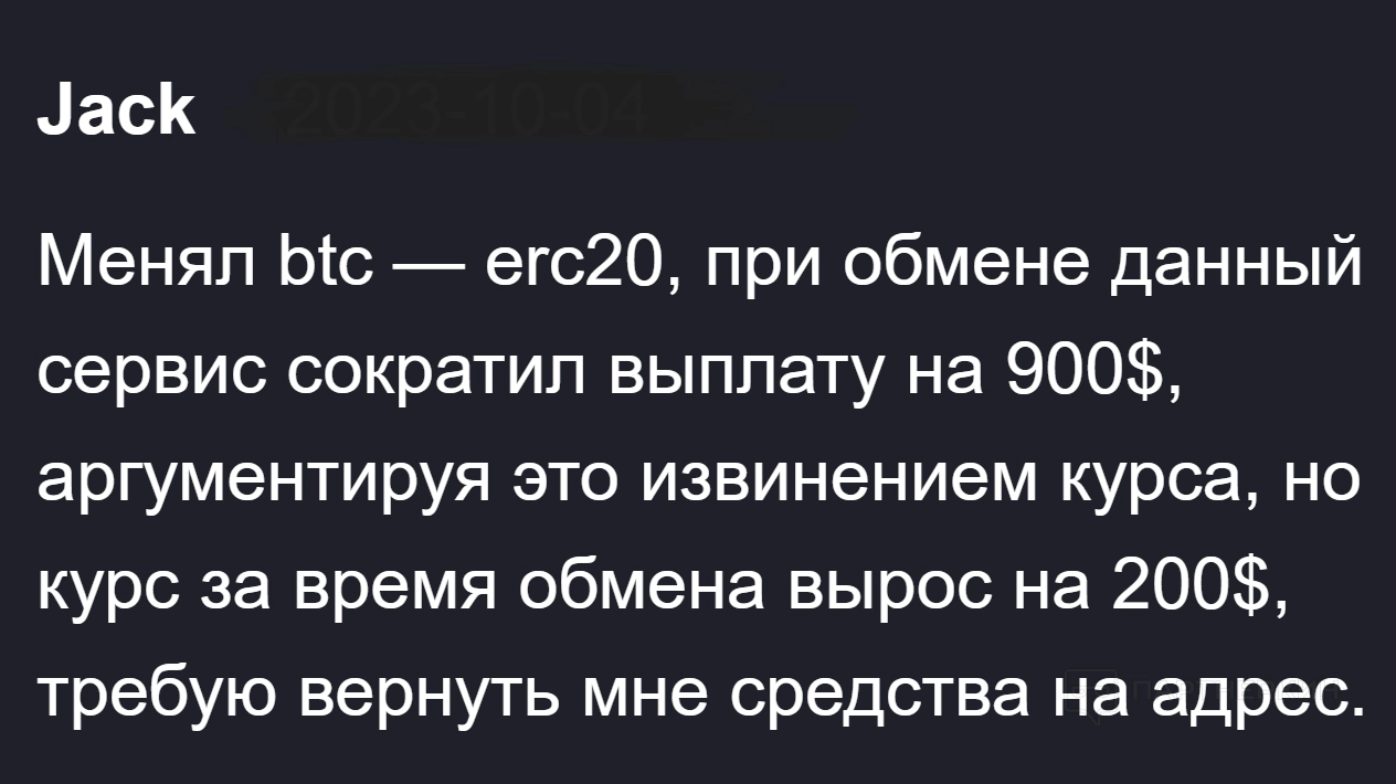Некоторые пользователи жалуются, что сумма на выходе оказалась меньше, чем предполагалось, что вызвано динамикой курсов криптовалют: