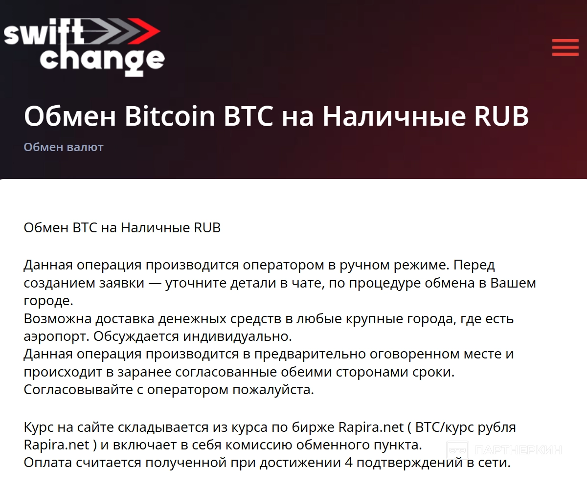 Для обмена, например, Bitcoin на рубли, процесс осуществляется вручную через оператора. Этот подход обеспечивает гибкость: можно согласовать все детали заранее, включая место и время получения наличных. Доступен также вариант доставки денег в крупные города, где есть аэропорты, что делает сервис полезным для путешественников или тех, кто работает в удаленных регионах.