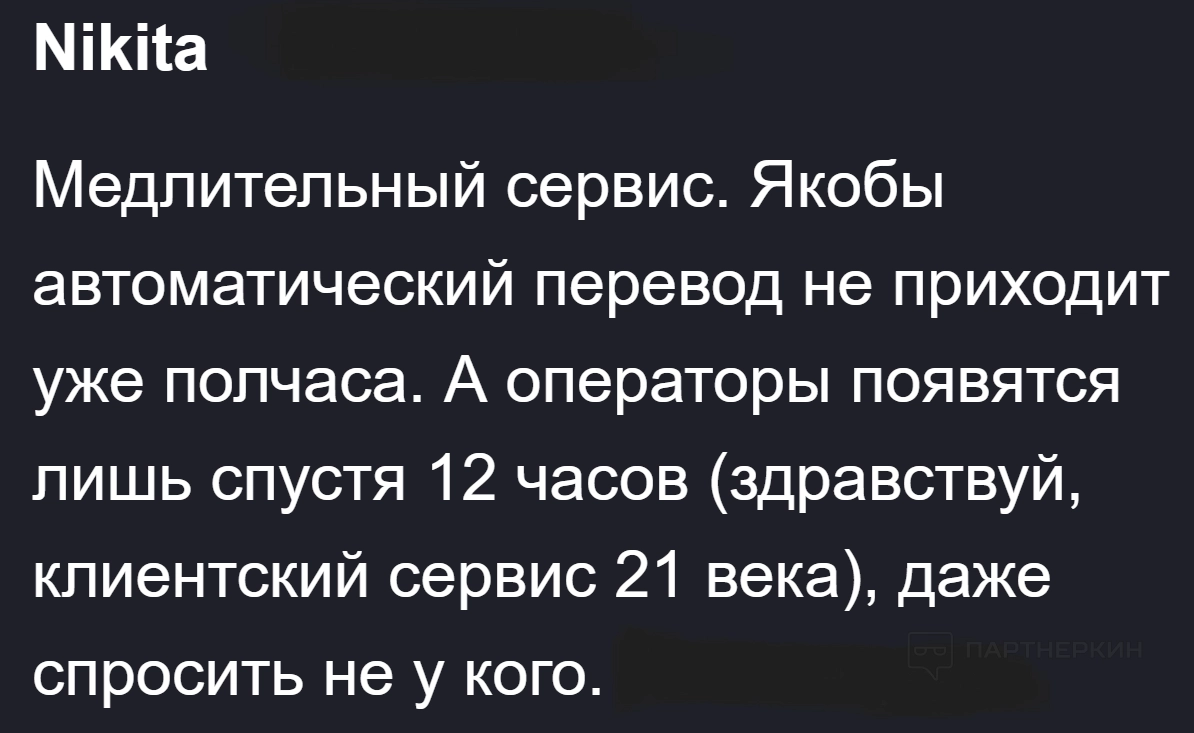 Однако некоторые пользователи упоминают, что автоматизация, на которую делает ставку сервис, не всегда работает безупречно. Бывают задержки в обработке заявок, и, что особенно раздражает клиентов, ответы службы поддержки при этом могут занимать часы, если не дни: