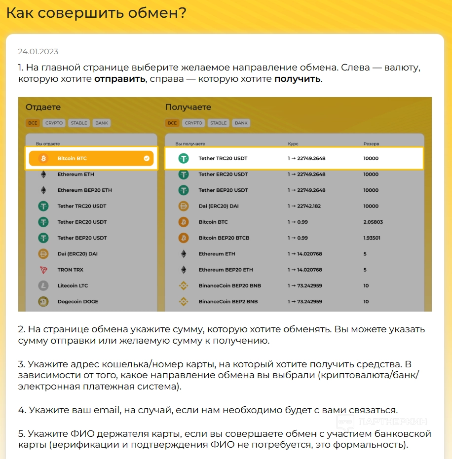 Для удобства пользователей на сайте размещена подробная инструкция, которая пошагово описывает весь процесс обмена, сопровождая его скриншотами. Такая визуализация помогает избежать путаницы и ошибок, что особенно важно для новичков.