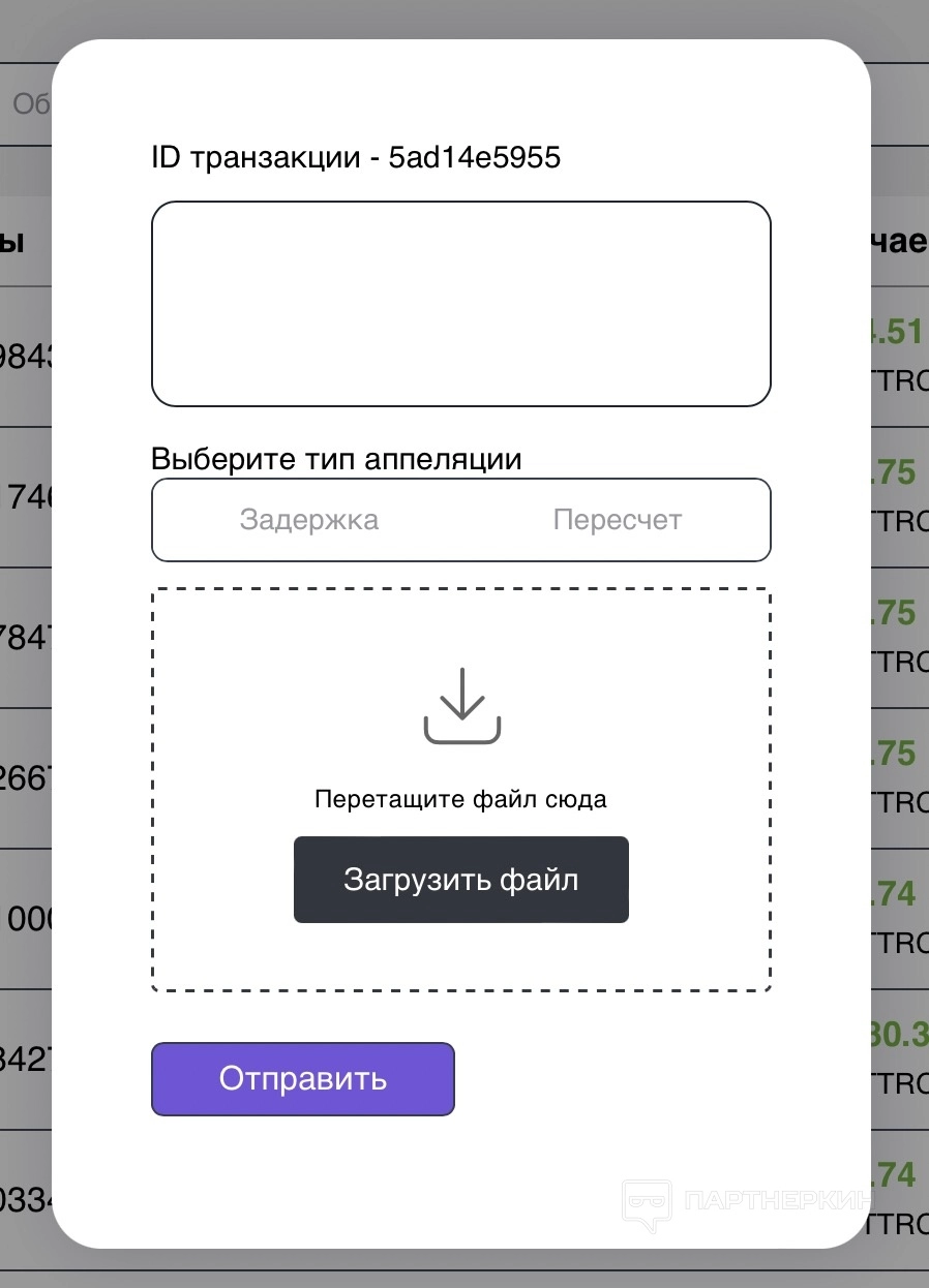 Если нажать на кнопку «Действия», можно подать апелляцию по выбранной операции: