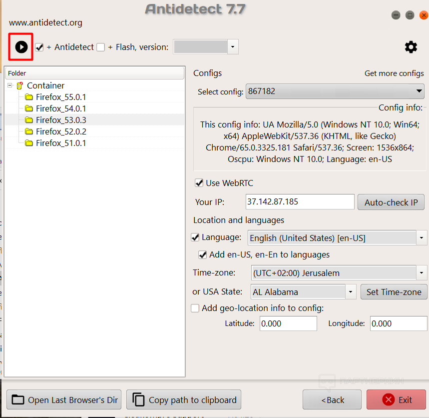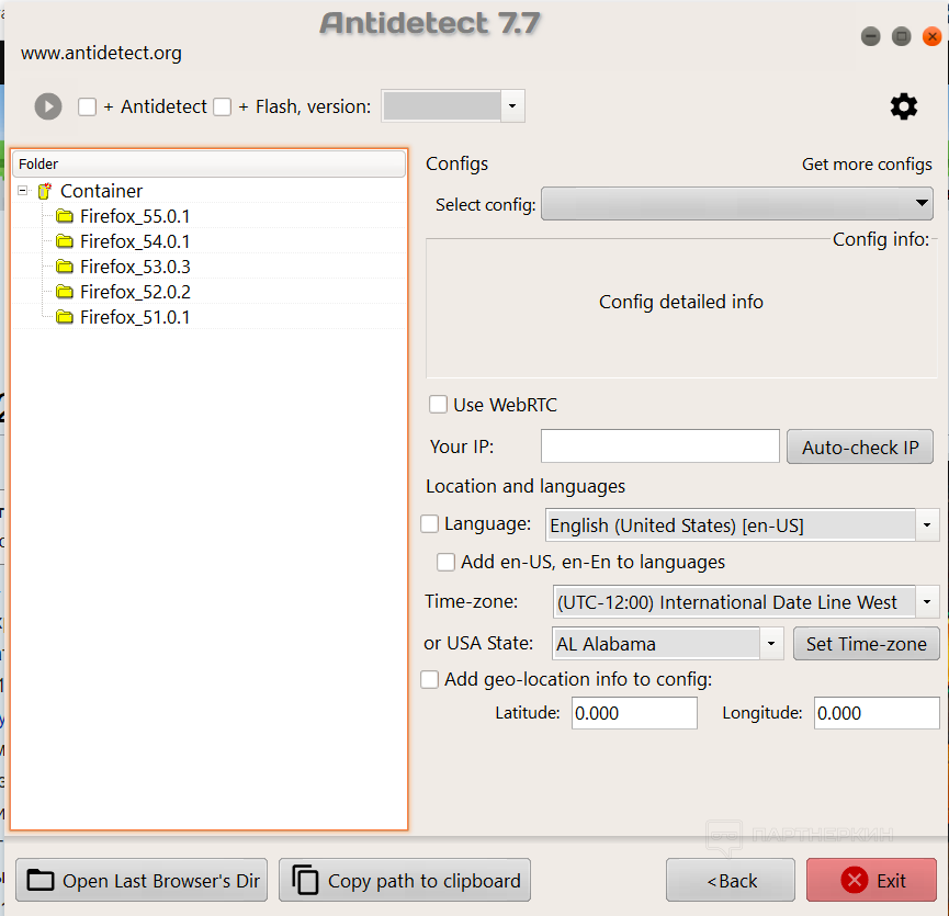 По сути, это средство для создания и эмулирования работы браузеров с разными конфигами. В данном случае, конфигурация — это специальным образом скопированные нужные файлы с реальных браузеров. То есть после покупки лицензии можно создавать браузеры, идентичные реальным браузерам, с которых сняли конфиги, но при этом они будут иметь свои отпечатки WebGL, Canvas и шрифтов. Важно: это будет стандартный Firefox Portable, его можно хранить в любом месте и открыть на любой машине = можно передавать созданный браузер коллеге со всеми настройками бесплатно, без смс и регистрации.