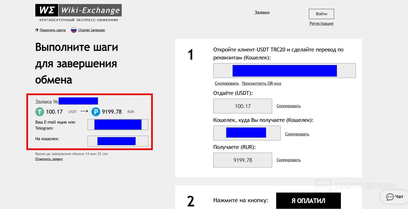 - После отправки денежных средств нажмите кнопку «Я оплатил» и дождитесь обработки заявки.