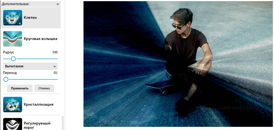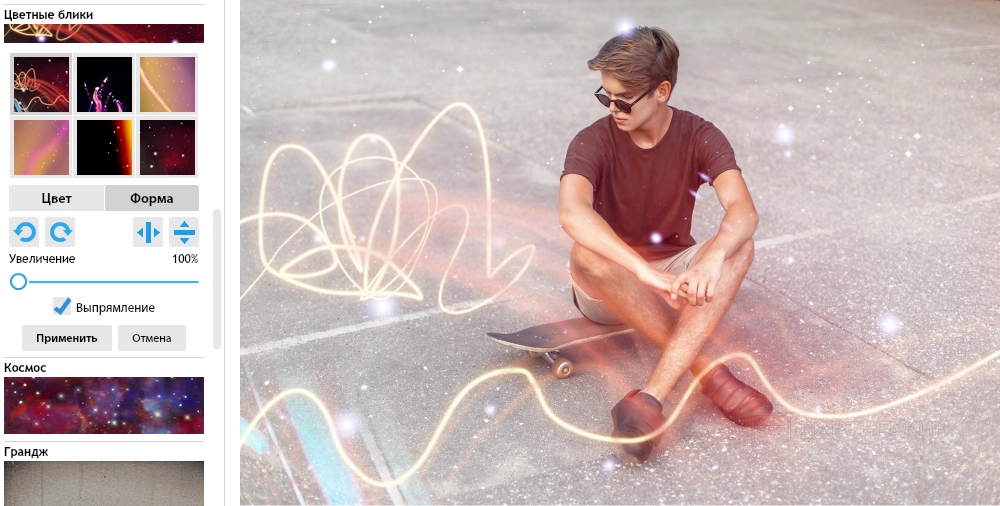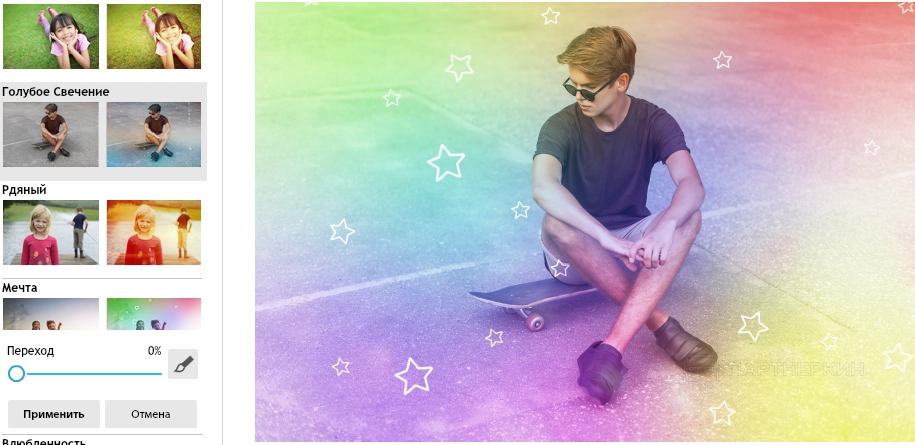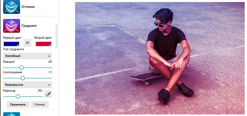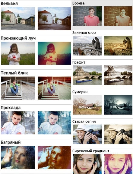 Фильтры используются для очистки и ретуширования фотографий и применения эффектов, которые придают изображению уникальный стиль. Фоторедактор