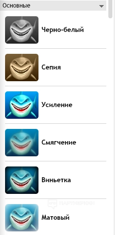 В раздел «основные» входят следующие фильтры (в скобках указаны дополнительные опции, которые может настроить пользователь):