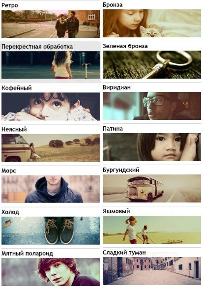 На выбор доступно шесть разных фильтров с разной возможностью настроек: