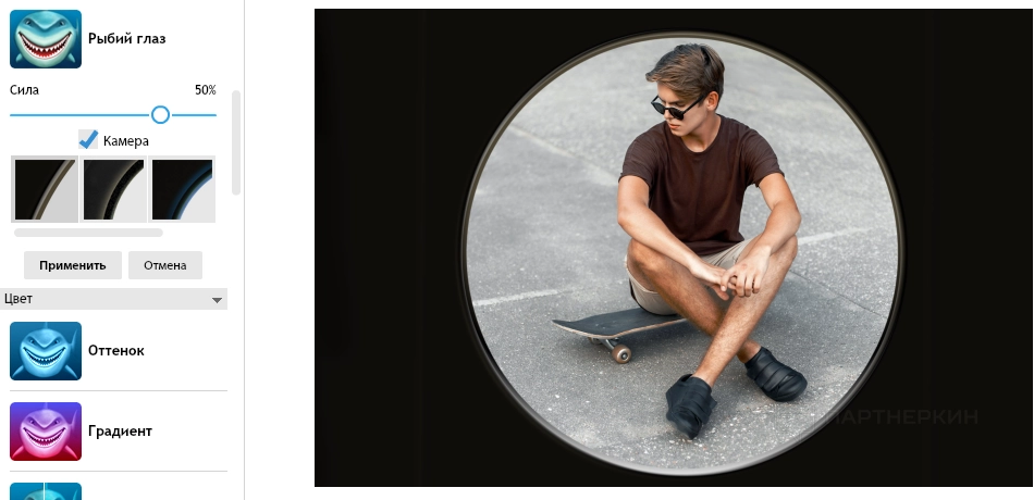 Для качественного применения эффекта опцию «сила» лучше оставлять на уровне 50% и меньше.