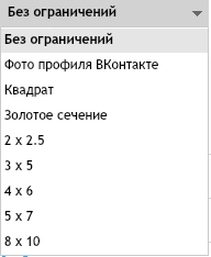 Инструмент обрезает изображение до требуемого размера. Пользователь может установить собственную ширину и высоту или выбрать предустановленные параметры: