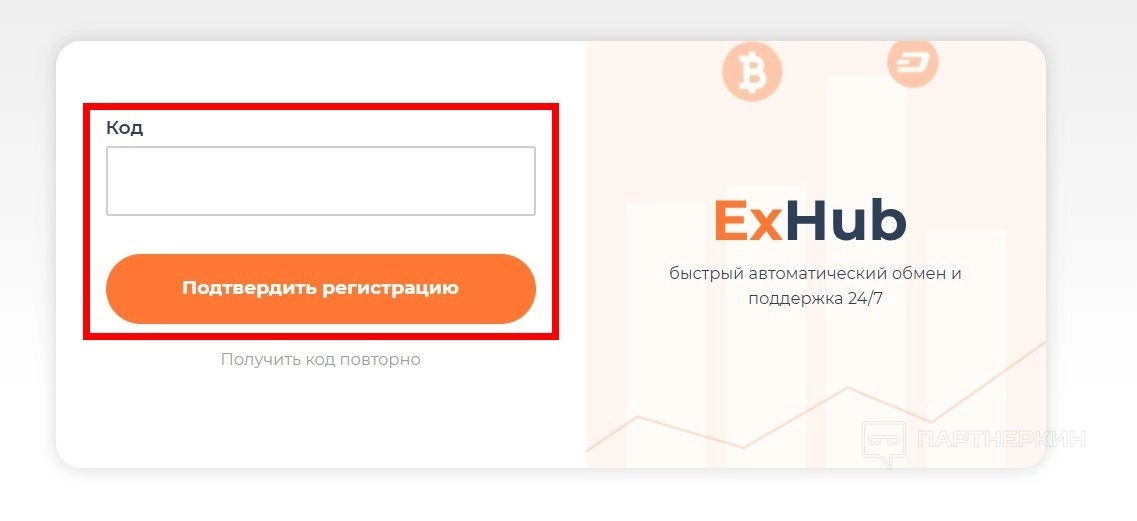 ExHub.io. После успешного подтверждения кода вы получите доступ к личному кабинету.
