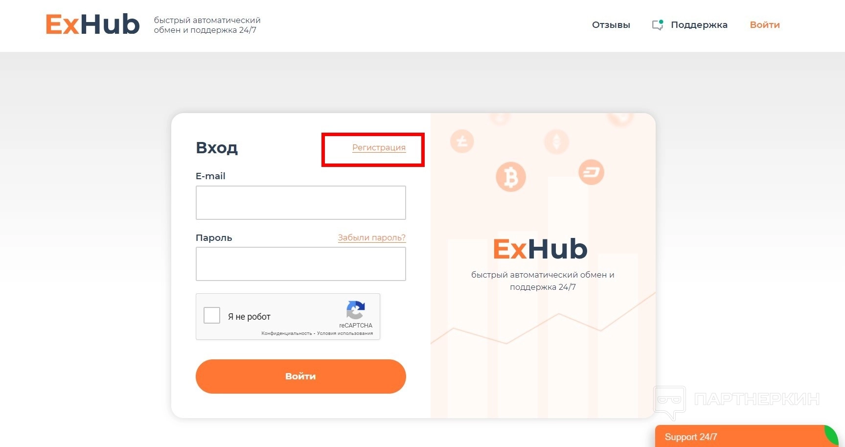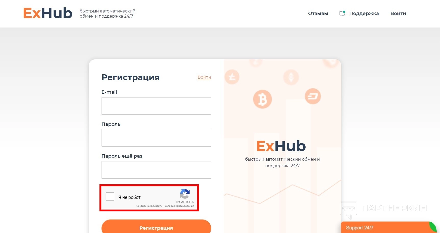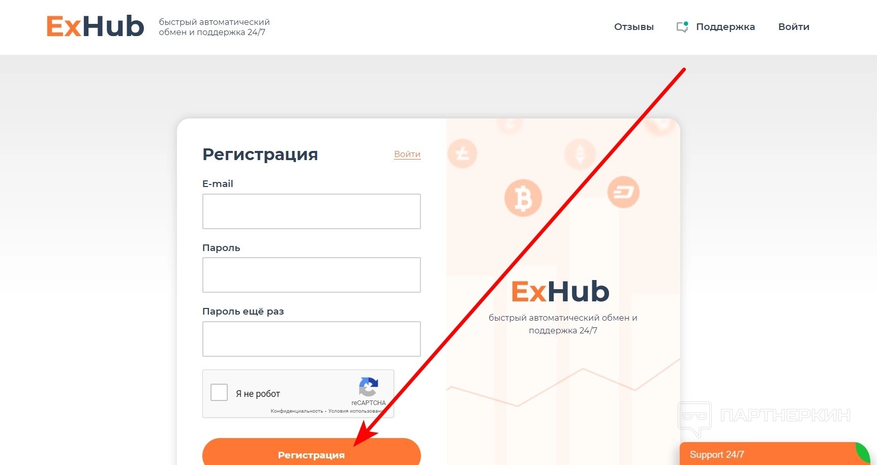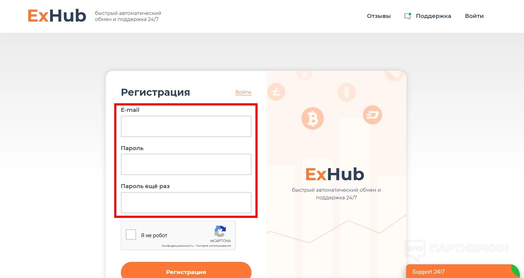 Процесс регистрации на ExHub.io простой и прозрачный: