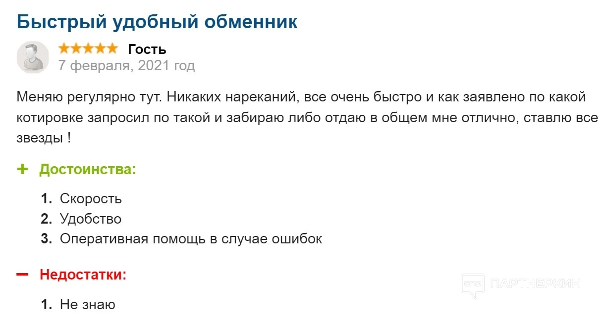 Однако, большинство пользователей выражают удовлетворение от использования сервиса. Они отмечают быстроту и выгодные курсы обмена, а также высокую доступность клиентской поддержки. Несмотря на это, следует учитывать, что мнение клиентов может различаться.