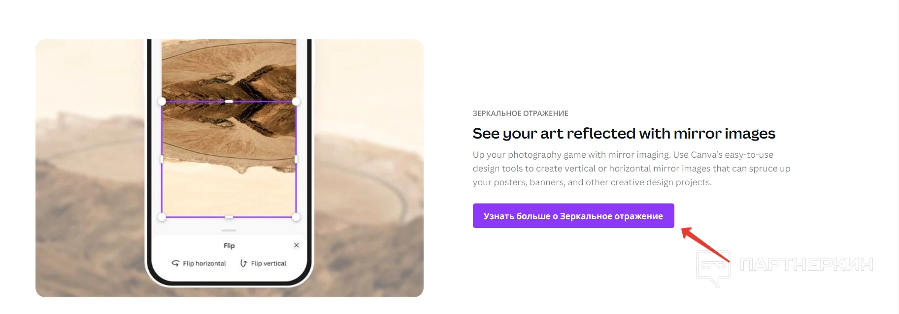 Возможности . Раздел посвятили образовательному контенту — каждый блок соответствует одной теме. Например, о том, как отзеркалить изображение в