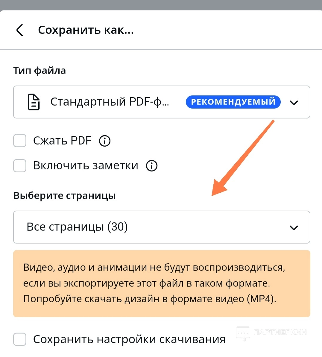 Тоже важный момент — если многостраничный проект скачать в формате картинки, тогда система сохранит каждую страницу как отдельное изображение. PDF позволяет все эти страницы объединить в один файл.