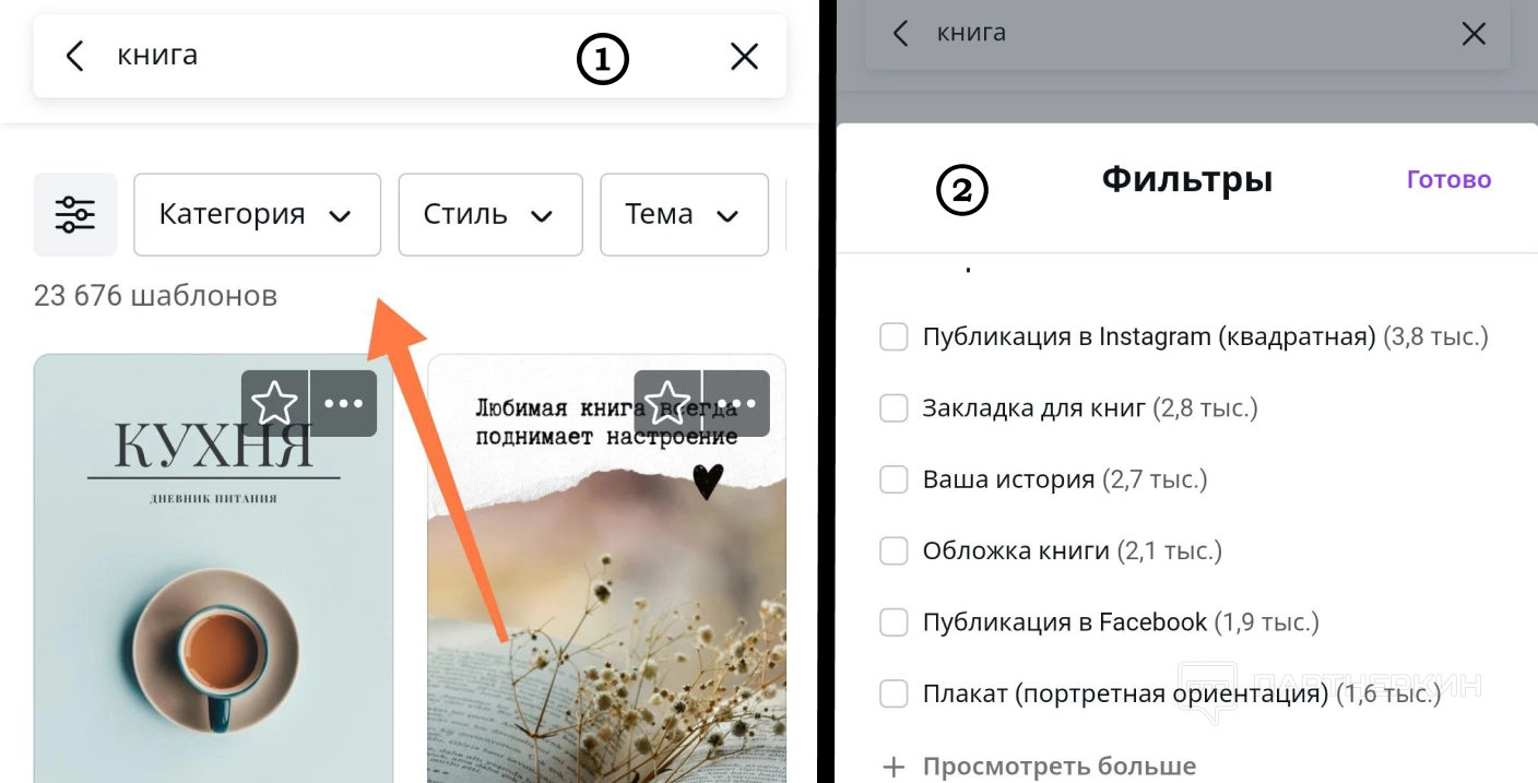 При поиске можно использовать различные фильтры по категориям, стилю, теме или цвету.
