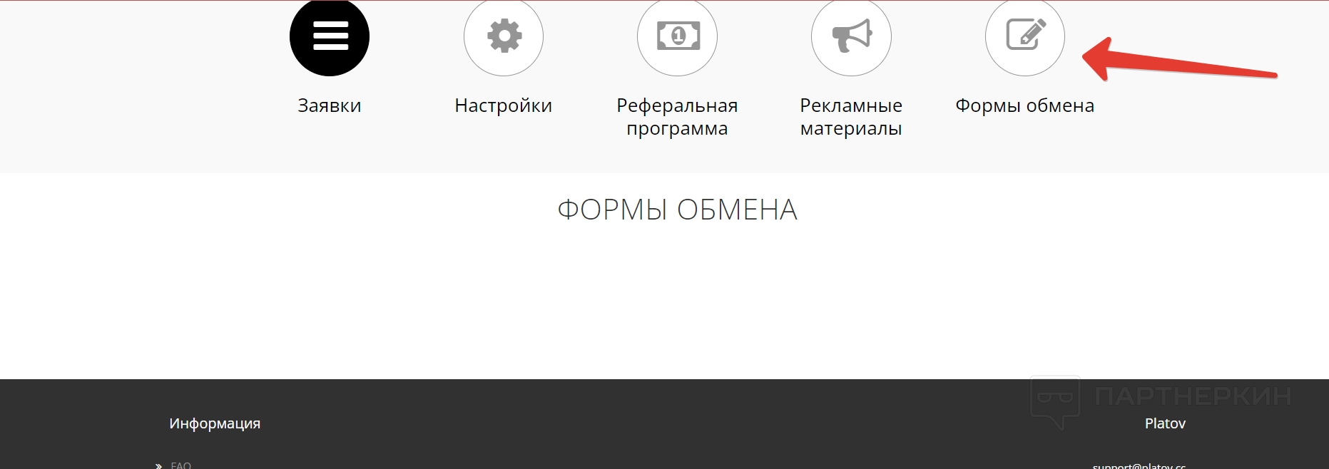 Партнерам — в этом разделе можно посмотреть подробную информацию по партнерской программе сервиса.