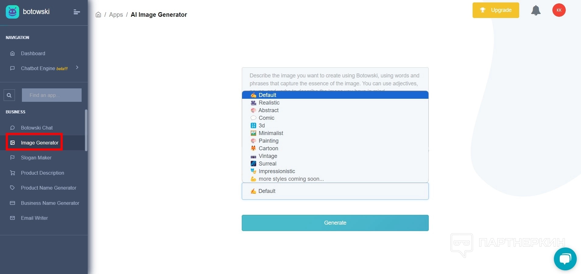 Генератор текстовых изображений. ИИ создает картинку на основе запросов. Также можно выбрать стиль. Например, аниме, 3D, винтаж и так далее. В бесплатном тарифном плане доступен только стиль по умолчанию. Также на изображении будет присутствовать водяной знак.