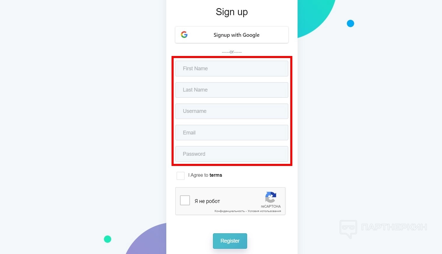 - Заполните форму. Укажите Ваши имя и фамилию, никнейм. Также добавьте email и придумайте пароль.