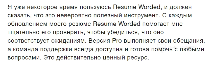 Многие пользователи отмечают высокое качество и эффективность тарифа Pro в улучшении своих резюме. Они рассказывают, как сервис помог им увеличить количество откликов на их заявки.
