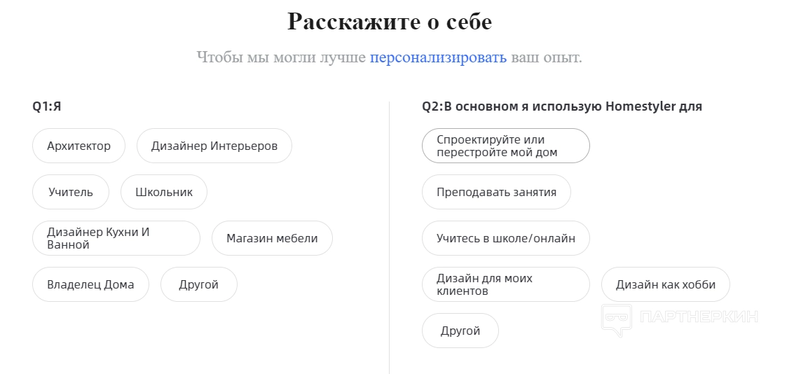 В появившейся форме указываем электронную почту и пароль. Также можно пройти авторизацию, используя аккаунты Facebook*, Google или Apple. Далее рассказываем, в какой сфере вы работаете и для чего собираетесь использовать сервис. После этого можно приступать к работе.