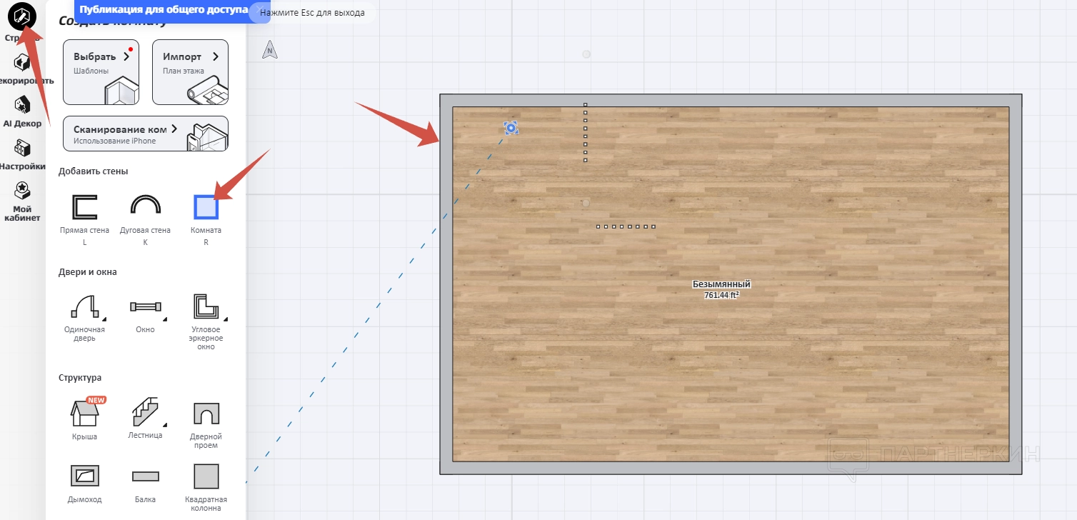 - Планировщик пола. Инструменты для точного измерения и создания планов этажей, включая стены, окна и двери.