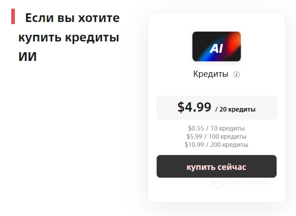 Еще сервис предоставляет кредиты на работу с искусственным интеллектом.