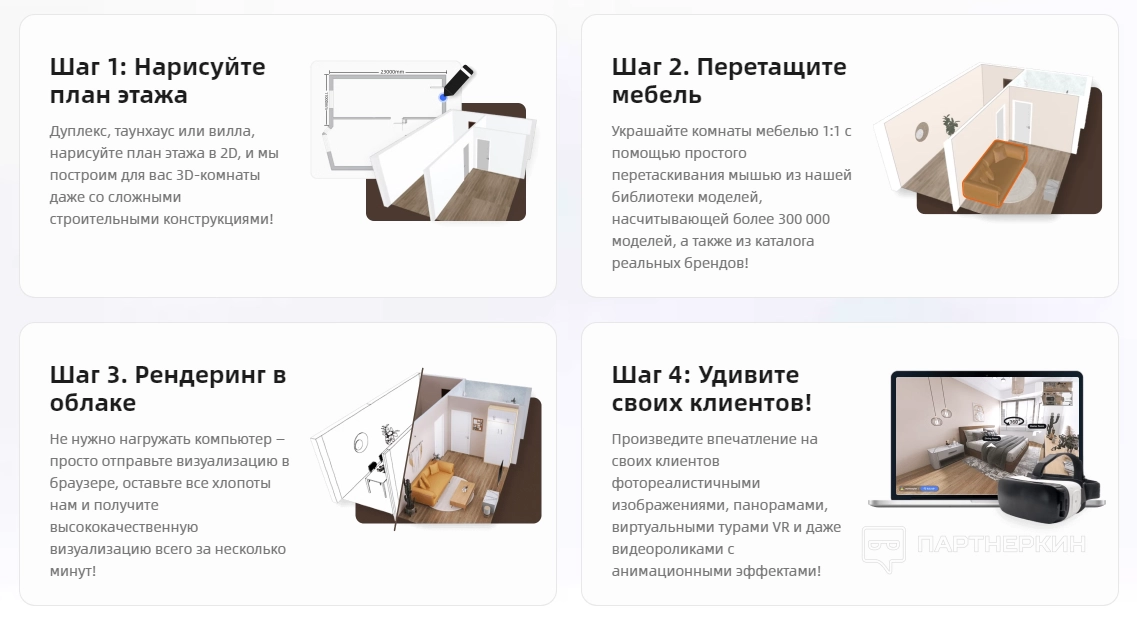 - 2D и 3D моделирование. Пользователи могут создавать планы помещений в 2D и мгновенно преобразовывать их в 3D.