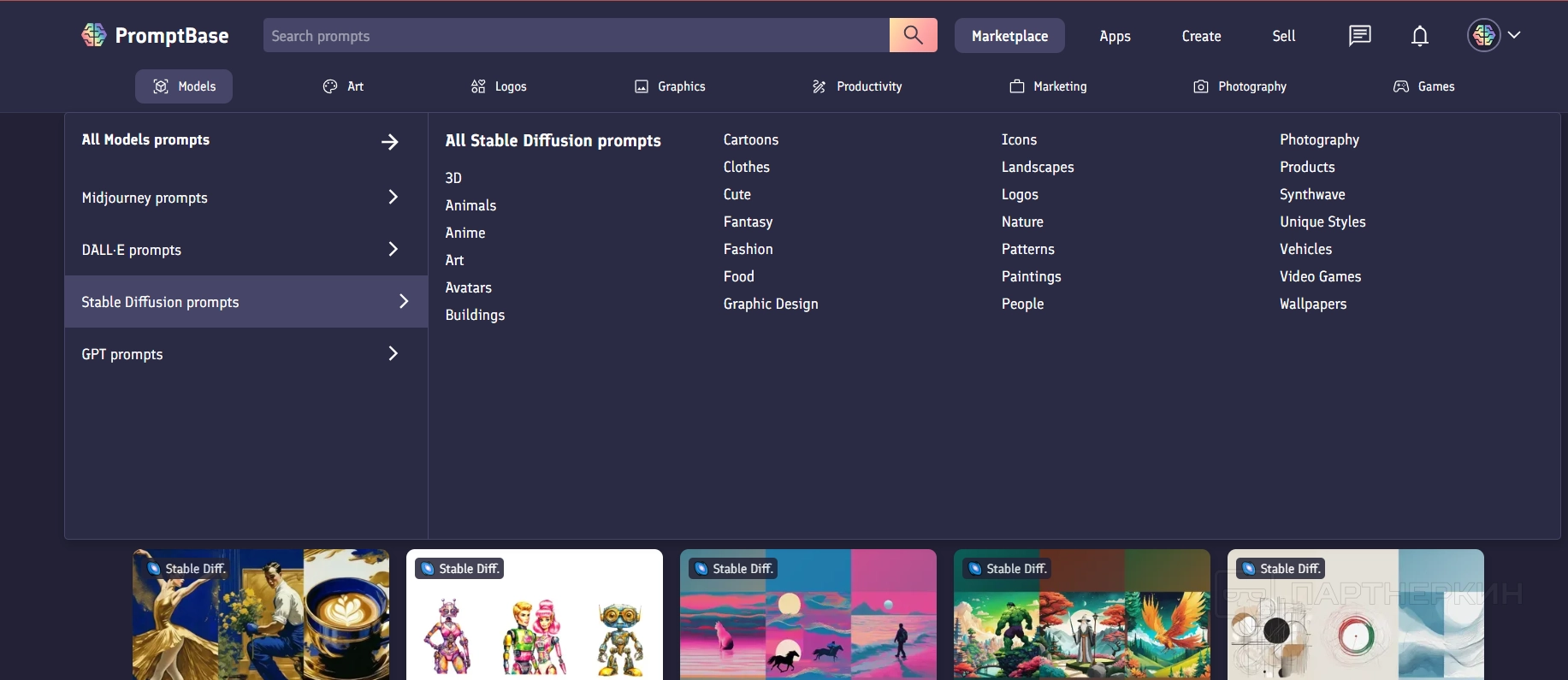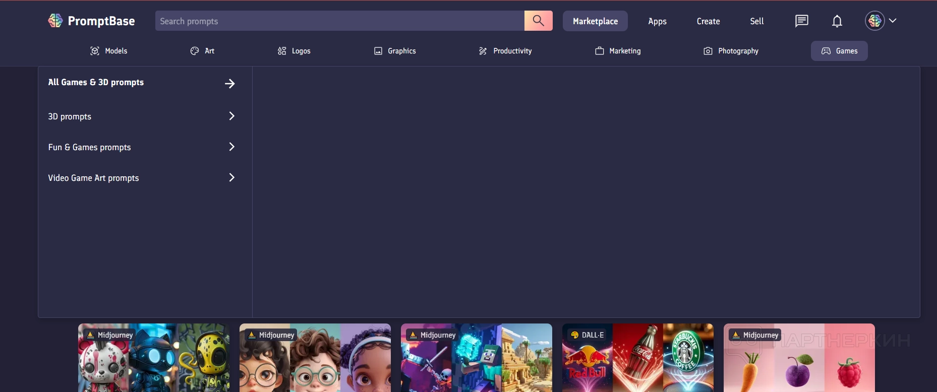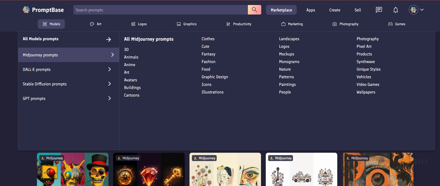 Например, стоимость набора промптов для генерации сюрреалистичных персонажей в Midjourney составляет 4,99 USD.