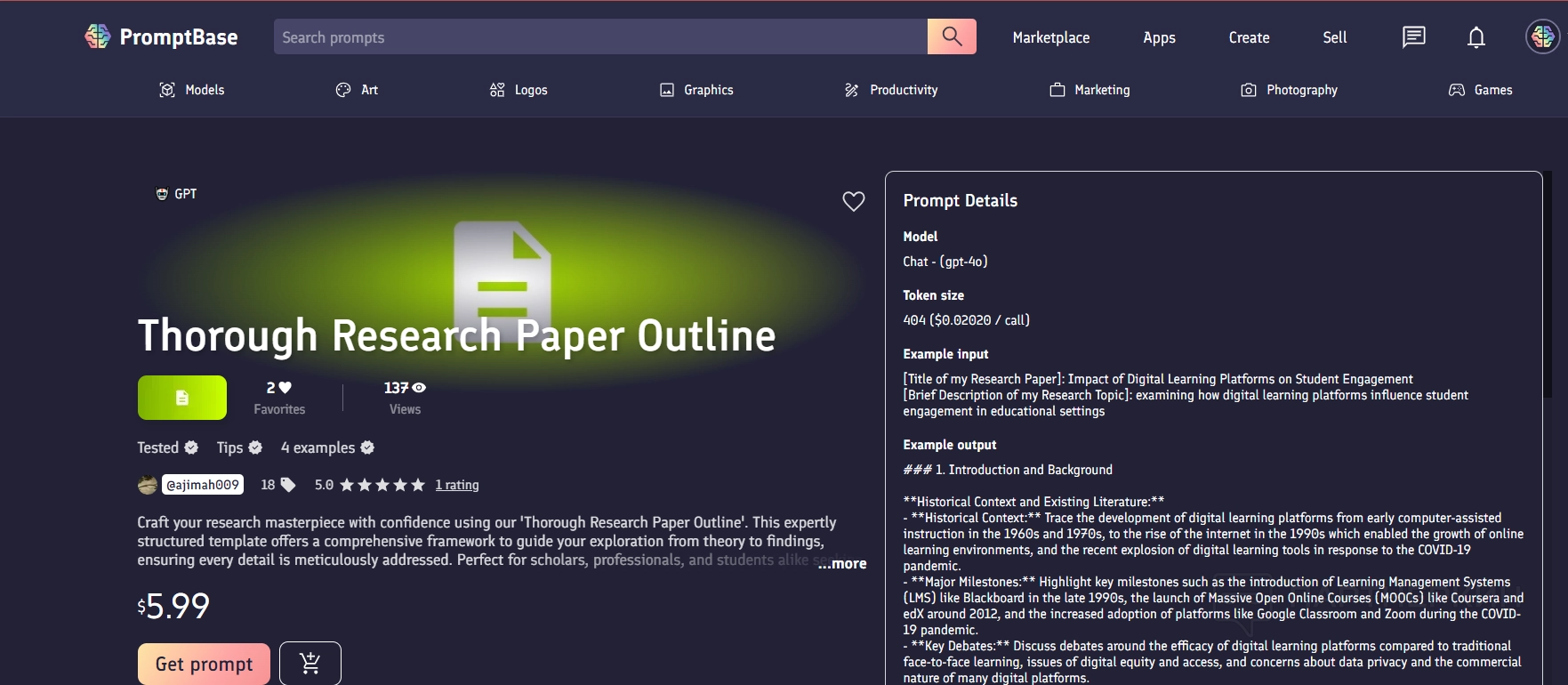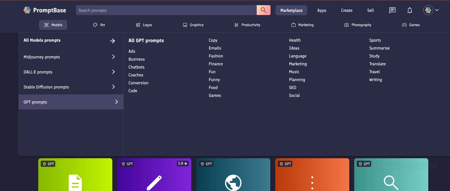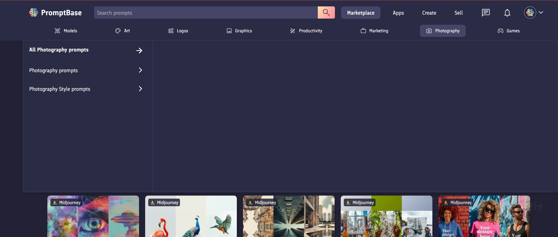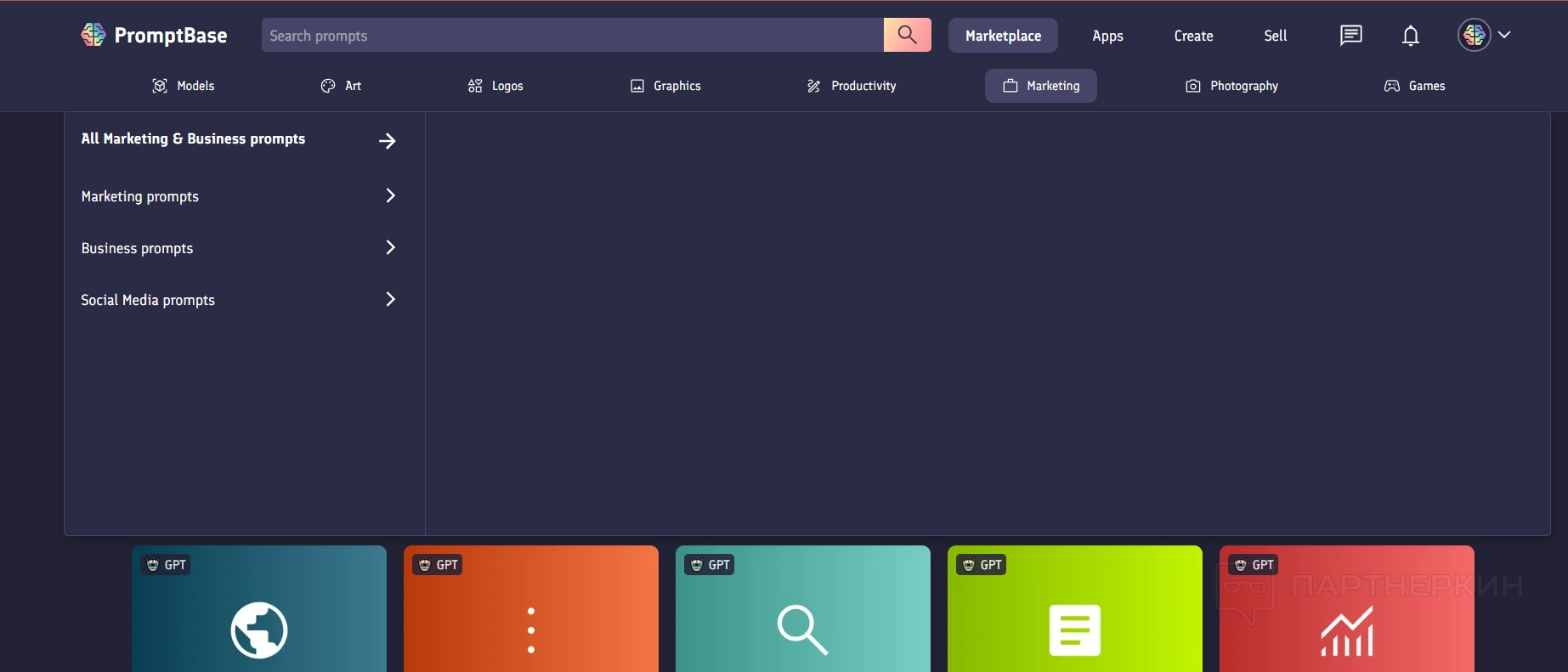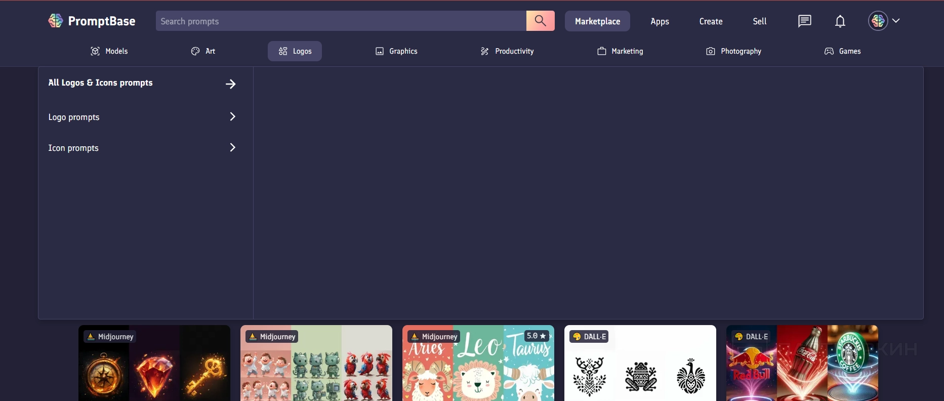 Интерфейс Promptbase