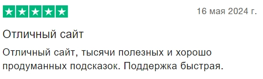 Пользователи высоко оценивают разнообразие и качество подсказок, представленных на сайте. Они также отмечают быструю и эффективную работу службы поддержки.