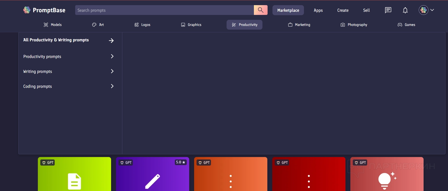- производительность — в этой категории пользователи находят подсказки для генерации разнообразных текстовых материалов, включая код, письма и другие продуктивные элементы;