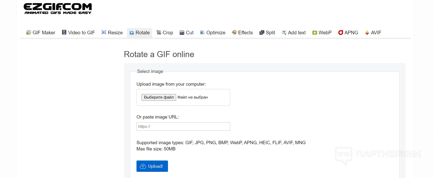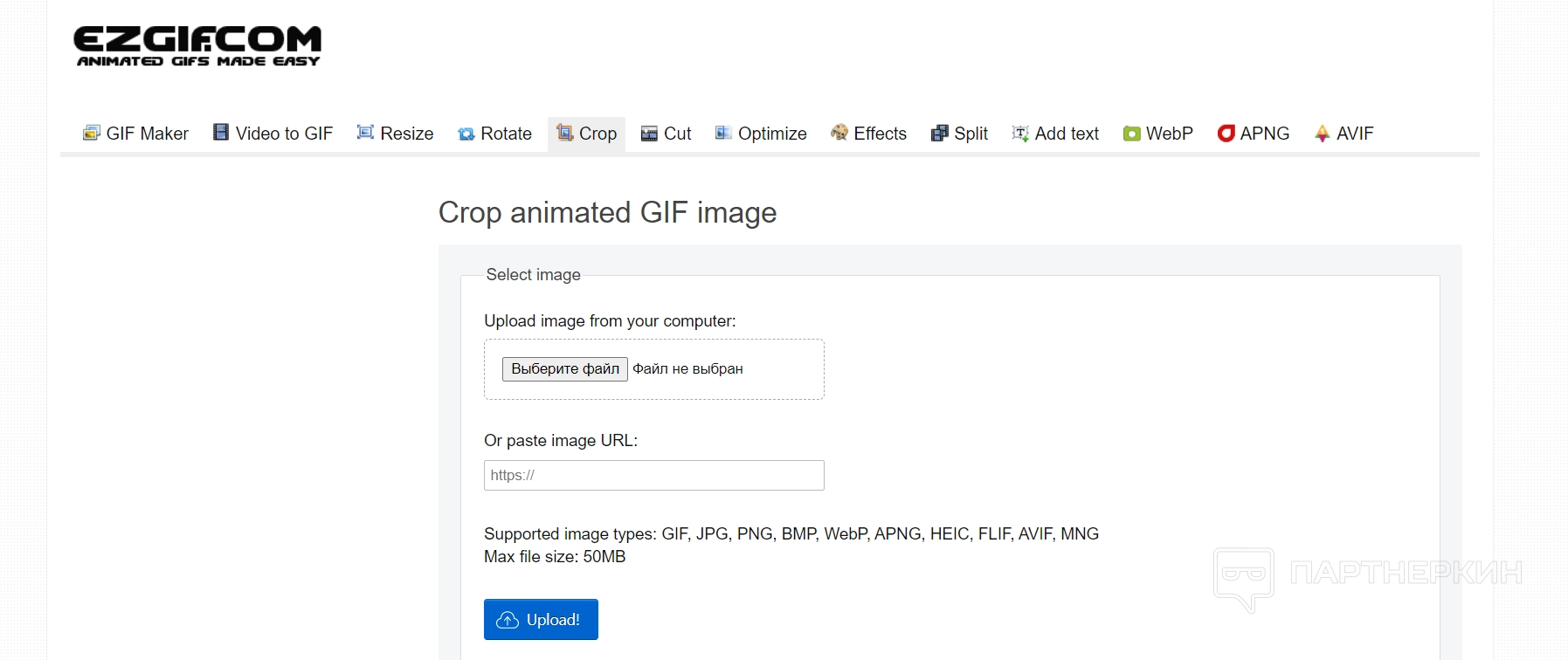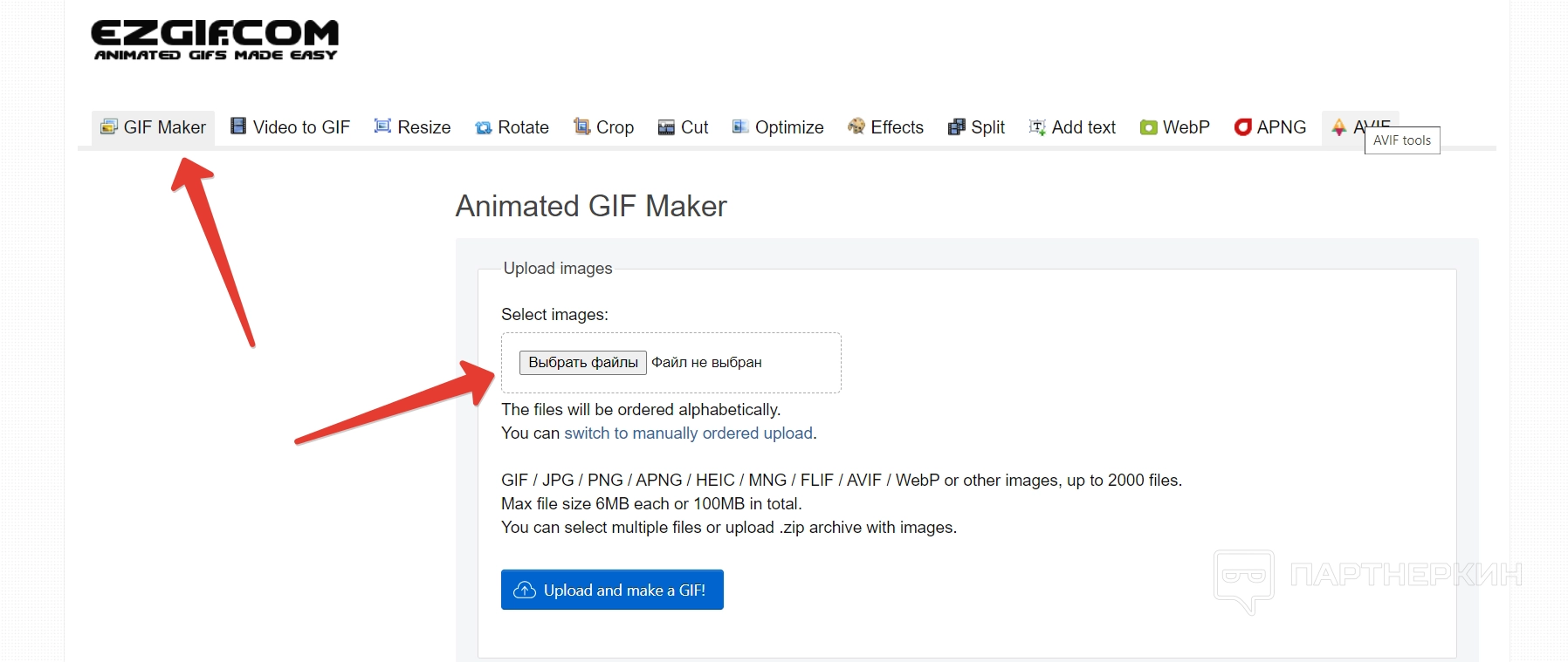 GIF Maker. Раздел для создания гифок позволяет делать GIF-файлы из картинок. Максимальное число картинок для одного файла — две тысячи. Можно добавлять файлы по отдельности или загрузить архивом. Причем сайт поддерживает разные форматы — GIF, JPG, PNG, APNG и другие.