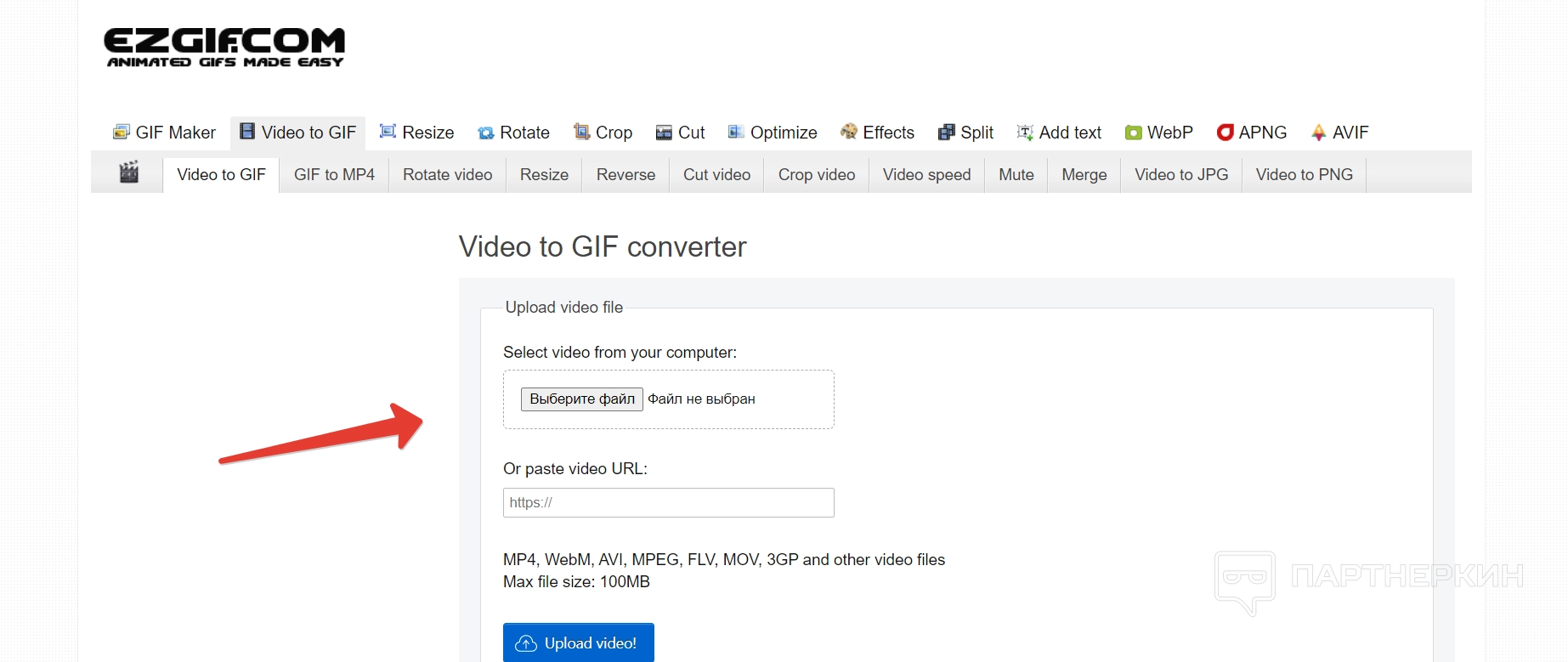Video to GIF. Функция позволяет сделать из ролика гифку, но есть ограничение по размеру — можно использовать видео размером до 100 MB. Сам клип можно добавить с устройства, а также вставить на него ссылку.