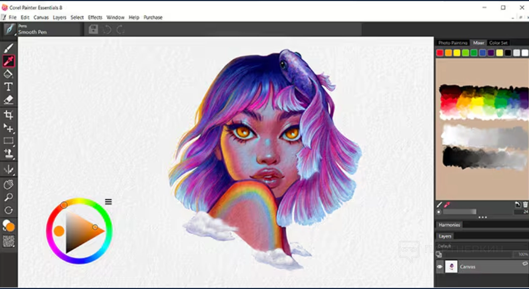 Painter Essentials 8 — это простое и увлекательное программное обеспечение для цифровой живописи, предназначенное для начинающих. Оно предлагает реалистичные кисти и инструменты для рисования, которые позволяют создавать художественные произведения на чистом холсте. Пользователи могут экспериментировать с ИИ-искусством на основе изображений и клонирования, а также использовать дополнительный набор кистей.